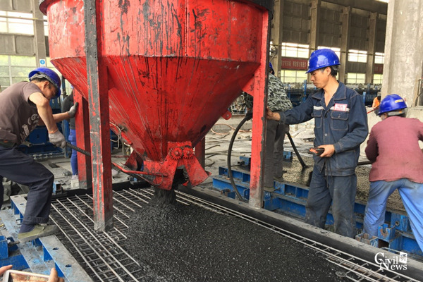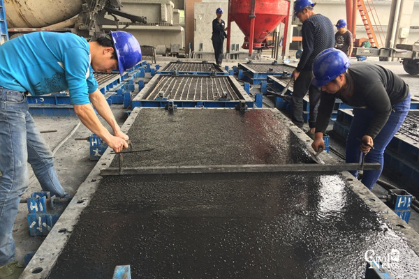 曾晓辉副教授主持的国家“十三五”重点研发计划课题成果在四川华西绿舍建材有限公司进行了成都市三环路改造用路面板的应用示范,“华西绿舍”生产主管蔡周平高级工程师、技术中心主管袁泽洋高级工程师和曾晓辉副教授、瞿福林同学在现场指导了路面板的生产。