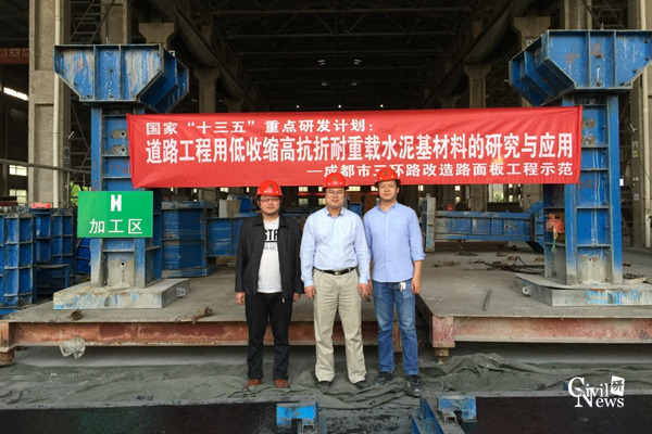 承担的国家“十三五”重点研发计划课题表示了浓厚兴趣,双方签订了针对三环路改造用路面板的合作研发协议,在本次应用示范中,采用本课题研制的材料进行了预制路面板的浇筑。现场检测结果表明,混凝土和易性优良,施工方便,硬化后的所有指标均优于现有混凝土,应用示范取得圆满成功。
