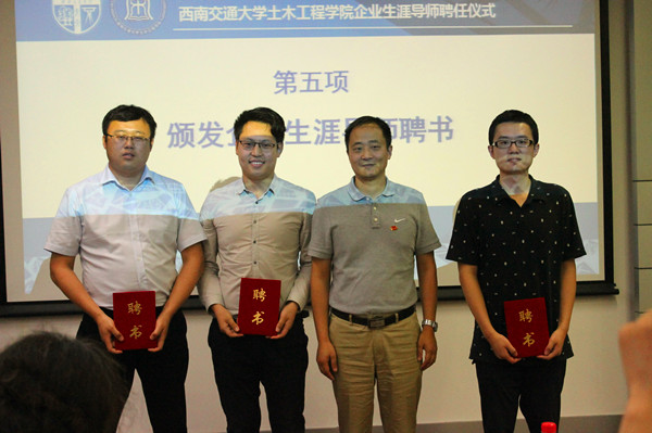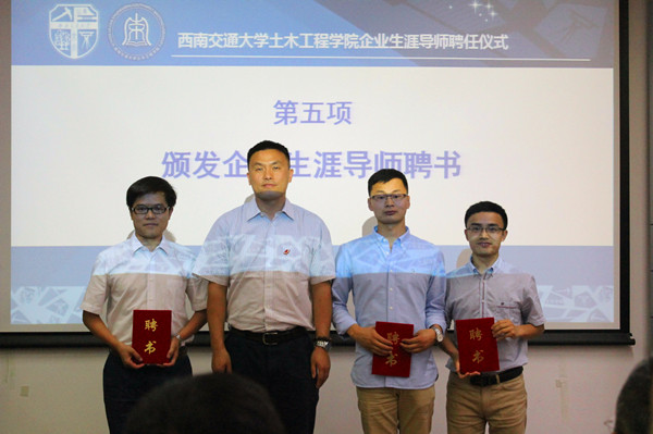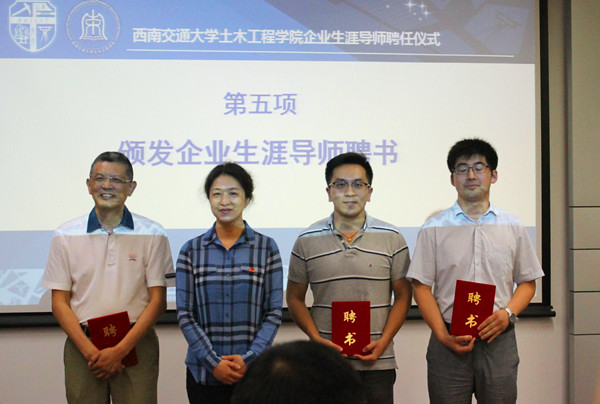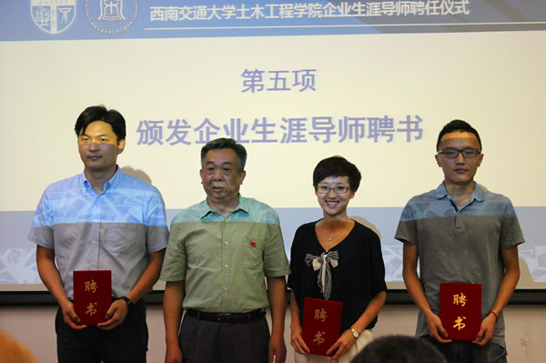 生涯导师名单。富海鹰副院长致欢迎辞,她表示土木学院会一如既往的对该项目进行强力支持,愿与各位企业导师一道共同为学生的教育做出新努力,探索出一条能较好适应行业需求的学生培养之路,开创校企双赢的良好局面。接下来高平平部长、丁伟常务副处长、潘昱副处长、富海鹰副院长分别为出席聘任仪式的12位导师颁发了聘书。