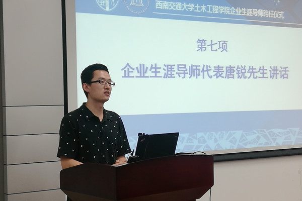 随后,企业生涯导师毛晨阳先生和唐锐先生先后作了发言。毛晨阳先生以一个50岁土木本科生就业的案例,讲述了职业选择价值观即职业生涯规划的重要性。唐锐先生在讲话中表达了对母校的感激之情,也非常感谢母校能够提供这样一个交流的平台。性吧