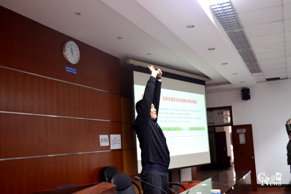 随后,校体育部刘江副主任结合师生体质提升计划,汇报了土木学院12月10日的体质测试结果,并且带领与会老师做健身操,教会老师们如何在久坐后锻炼自己的身体,预防疾病。