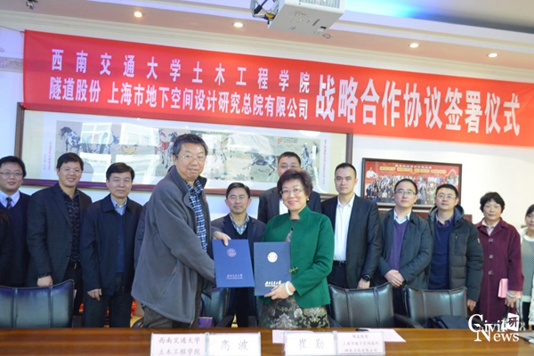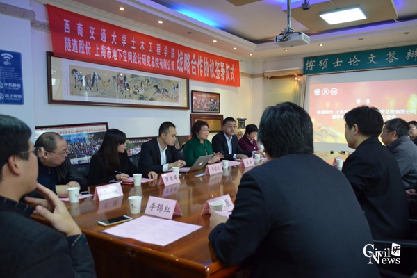 与隧道股份上海市地下空间设计研究总院有限公司的战略合作协议。会议还就合作项目研究、技术共享和模式创新等方面做了深入探讨。