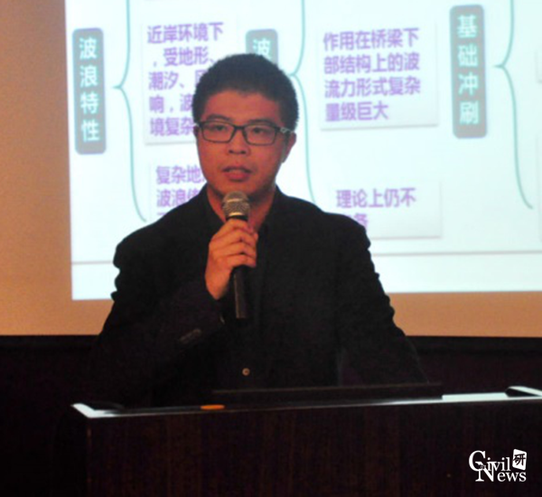 魏凯副教授作了题为“海洋桥梁工程波流力作用与基础冲刷”的专题报告,对波浪场研究、大尺度结构波浪荷载分析方法、基础冲刷研究、海浪预报等方面进行了汇报交流。