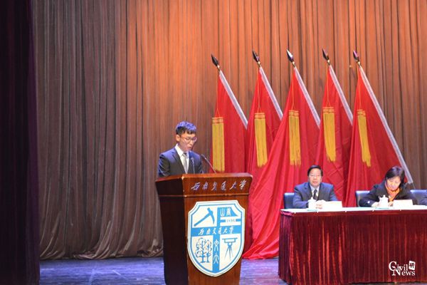 2013级本科生陈坤作为学生党员代表发言