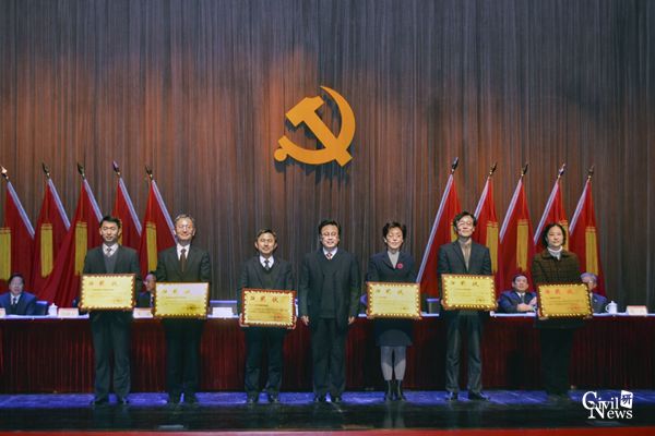 钱永久书记接受先进基层党组织表彰(左起第三)