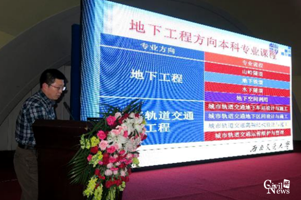 土木工程专业地下工程方向和城市地下空间工程专业建设概况》的特邀报告。就我校隧道与地下工程学科的历史沿革、师资力量、学术顾问、杰出人才、课程设置、质量标准、实践环节、创新教育和教学与科研成果等方面进行了专题汇报,展示了我校在隧道与地下工程专业上的悠久历史和教学与科研中所取得的瞩目成绩,对于扩大我校在城市地下空间工程专业建设上的影响起到了积极的宣传和推动作用,也为学院地下工程系今后在本专业建设中发挥主导地位奠定了良好的基础。