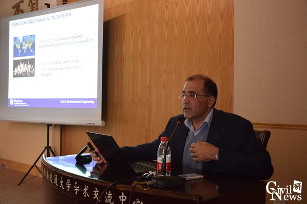 EI Damatty教授的精彩讲座使在场师生对龙卷风和下击暴流作用下的输电线路结构、木结构房屋的抗风性能以及风荷载作用下高层建筑设计有了更多更深刻的理解。在交流阶段,师生们积极提出问题,EI Damatty教授都耐心地做了解答。最后,讲座在大家热烈的掌声中顺利结束。