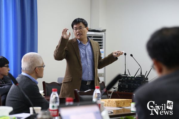 魏凯副教授就飓风作用下海上风力发电机组风险评估作了汇报,主要结合他在国外三年的研究工作从近海风电场研究需求、近海风机单桩基础全寿命期和潮间带风机单桩基础实验等方面作了详细介绍,至此,上午汇报结束。