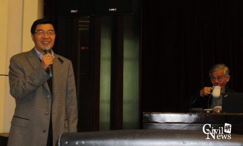 地下工程系师生的热情欢迎,整个多功能厅座无虚席。