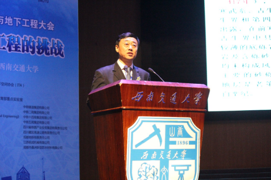 仇文革教授主持,仇文革教授热烈欢迎了出席会议的嘉宾,并正式宣布国际专场开幕。接着仇文革教授邀请国际隧协(ITA)副主席、中国土木工程学会隧道及地下工程分会副理事长严金秀致辞。严金秀女士指出了国际交流的重要性及必要性,国内和国外的专家学者应共同迎接地下工程的新挑战。最后,由国际隧协(ITA)主席Mr. Tarcisio B.Celestino致辞。Mr. Tarcisio B.Celestino在致辞中动情地说,26年前ITA会议便在我校举办,很高兴能再次在西南交大举办隧道工程界的顶级会议,接着Mr. Tarcisio B.Celestino介绍了ITA的成立、发展和现状,肯定了中国在隧道工程领域做出的贡献,并预祝大会圆满成功。随着Mr. Tarcisio B.Celestino致辞结束,2016中国隧道与地下工程大会暨中国土木工程学会隧道及地下工程分会第十九届年会国际专题报告正式开始。