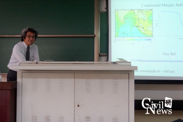 Yeh教授先是展示了他现场调查获取的影像资料,以过去20年间世界各地特大海啸的实测资料向同学们介绍了海啸的特征和危险性。同时Yeh教授延续了前一场讲座幽默风趣的风格,以通俗易懂的方式讲授了海啸的产生,推进和对陆地的淹没,让在场同学理解到了智利发生的地震是如何产生海啸并横跨太平洋对日本海岸造成重大影响。