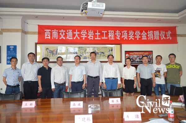 岩土工程专项奖学金捐赠仪式在土木学院1208会议室举行。