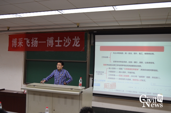 紧接着任万敏博士就工作方面与在场学生进行交流,他分析了近几年铁二院的招生情况,提醒同学们就业压力的日益增长对研究生及博士生的自身能力有了更高的要求。对于他的成功,他谈到有空杯心态即你想做什么?你只能做什么?只能你做的是什么?同时需得到肯定与机遇。
