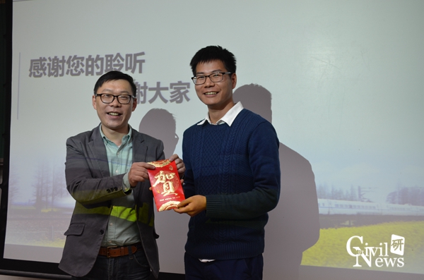 随后王森荣博士针对设计院的人才需求做了演讲,他同样强调了解行业整体形势的重要性,并介绍了铁路的当前及今后的发展趋势。紧接着他讲解了设计院所需的各类人才,如技术人才,科研人才,建造管理人才等,而设计院的当前情况是既有生产任务也有技术研究任务。作为中铁第四勘察设计院线站处轨道所副所长,王森荣博士同时介绍了铁四院轨道所的业务范围。最后王森荣博士对在座的研究生及博士生提出几点建议:多参加竞赛;多参加学术报告交流;多做笔记;多看论文;多沟通多交流;多实践多思考。