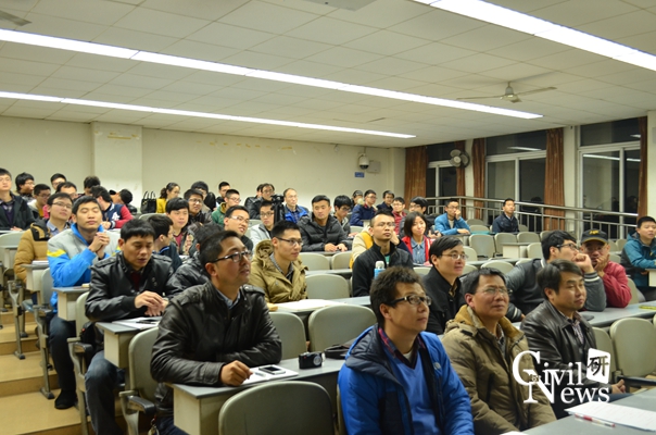 讲座一直持续到了晚上10点钟,大家都有很多的问题想和潘教授交流,潘教授都认真做了解答。我校的师生和潘教授进行了深入的讨论,学术氛围非常的浓烈,同学们获益匪浅,不忍失去这么好的交流机会,积极提问,最后因时间有限,大家鼓掌欢送潘鹏教授的离开。