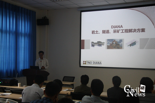 地下工程系主办,由Diana公司中国合作公司郭樸土木(北京)有限公司总经理罗燕,TNO DIANA中国区域技术顾问、一级注册岩土工程师李治及TNO DIANA中国市场营销总监、土木工程师Yongyeon Bae等为大家讲解DIANA在岩土、隧道等地下结构上的应用。与会的有地下工程系张志强教授、晏启祥教授、周佳媚教授、耿萍教授、蒋雅君副教授、申玉生副教授和马龙祥讲师等老师以及土木工程各专业师生。