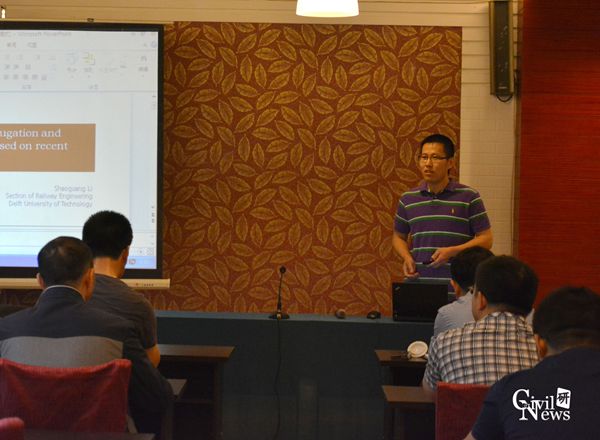首先,李博士对代尔夫特理工大学进行了简单介绍,代尔夫特理工大学成立于1842年,是荷兰最大的工程大学,共8个院系,20000名学生,其中国际留学生3000名左右,教职工2668人。然后对该校轨道方向的研究小组做了介绍,并表示欢迎我校学生前去交流访问。随后,李博士介绍了荷兰铁路网的走向、布局等方面内容。接下来,李博士重点对钢轨短波不平顺问题进行了具体阐述。短波不平顺主要存在于直线或缓和曲线。它受到广泛的关注的原因主要有两方面原因。第一,它加剧了车辆——轨道系统的振动,从而产生高频轮轨动态接触力,导致车辆轨道系统的主要部件加速劣化。第二,高频接触噪声影响着生活在铁路沿线的居民。此外,它还可能引起滚动疲劳(RCF)。预防性打磨似乎是唯一有效的对策,然而,打磨增加了维护成本,减少铁路网络的可用性。因此,三维有限元车辆——轨道相互作用模型被用于研究不平顺的发展的机制,李少光博士对模型及计算结果进行详细了介绍。
