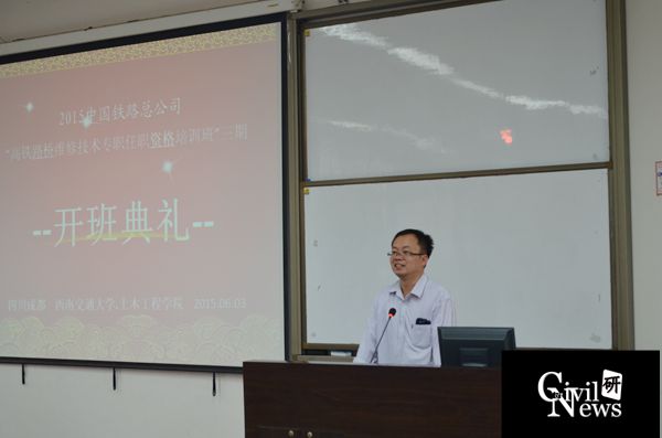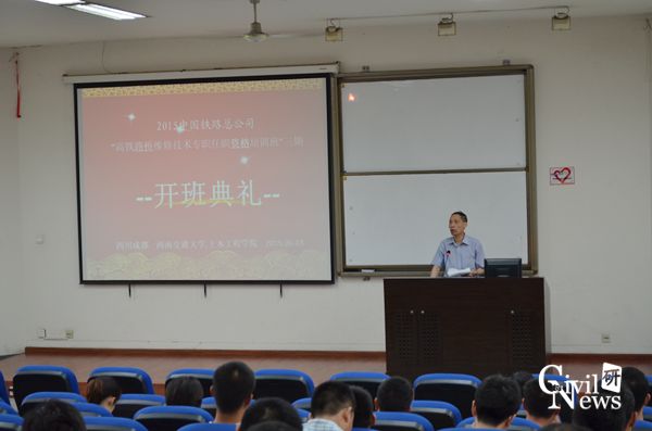 和中国铁路总公司联合举办的2015中国铁路总公司“高铁路桥维修技术专职任职资格培训班”三期开班典礼在九里校区0231教室举行。出席本次开班典礼的有性吧