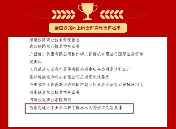 深水大跨桥梁创新集体荣获“全国铁路向上向善青年集体”;性吧