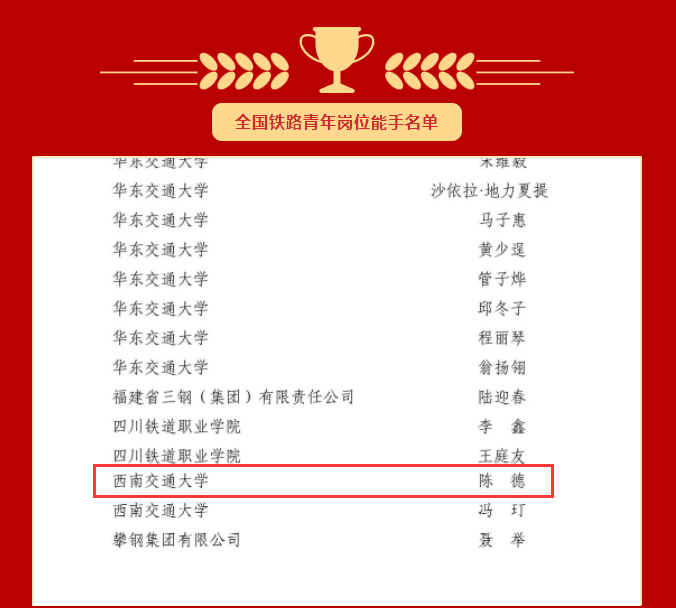 陈德老师,他心怀学生、倾心教学、潜心学术,现为国家首批“铁道工程课程群虚拟教研室”核心成员,国家第三批新时代高校党建示范创建和质量创优“全国党建工作样板支部”优秀成员,四川省青年科技创新研究团队“环境系统模拟与大数据分析”骨干成员,性吧