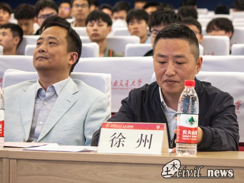 徐州校友讲述了其在埃塞俄比亚和老挝的工作经历。在埃塞俄比亚,由徐州组建的课题攻关小组通过对铁路沿线上百公里的徒步取样和上千次的配比实验,最终成功攻克了“火山灰”技术,不仅解决了当时填料匮乏的难题,节约了巨额的工程建设成本,还为埃塞俄比亚找到一种可以广泛应用的施工技术和材料,为当地的建设发展拓展了资源。在老挝,徐州带领团队创下中老铁路全线第一个桥梁桩基成桩、第一个桥梁墩台成型的记录;在20天内建成中老铁路展示馆和安全体验馆、1个月内打造出楠科内河特大桥和万象北站两个标准化施工示范段并先后被老中铁路公司评为5个“标准化工地”。徐州校友还分享了在埃、老两地的生活故事和工作经历,并鼓励同学们在奋斗中释放青春力量、在拼搏中实现个人梦想。