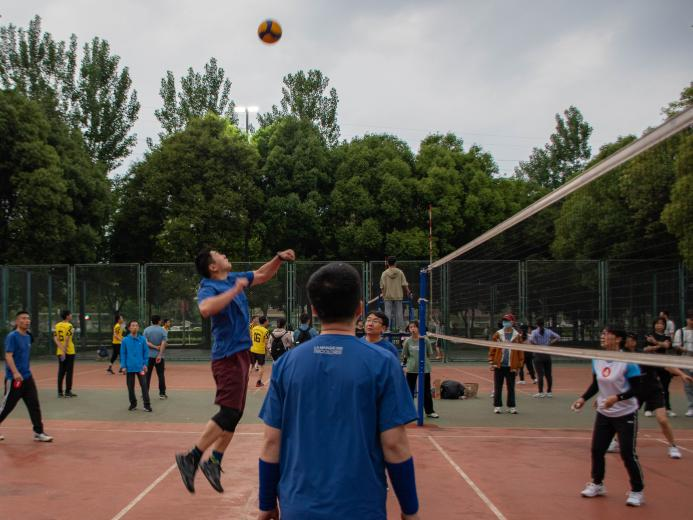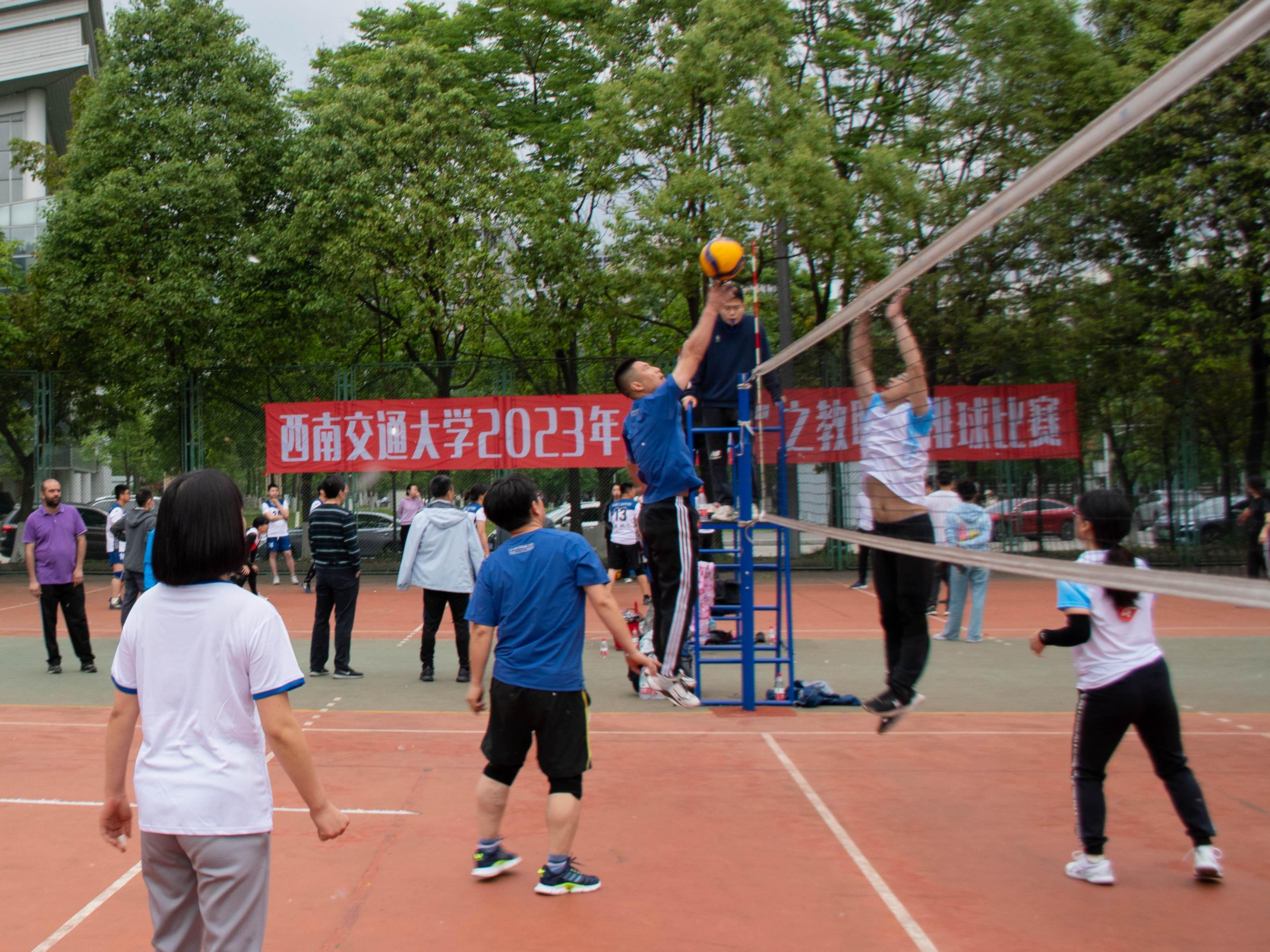 2023年“健康月”之教职工排球比赛男子组于北区排球场举行,本场比赛是由土木队对阵网院队。