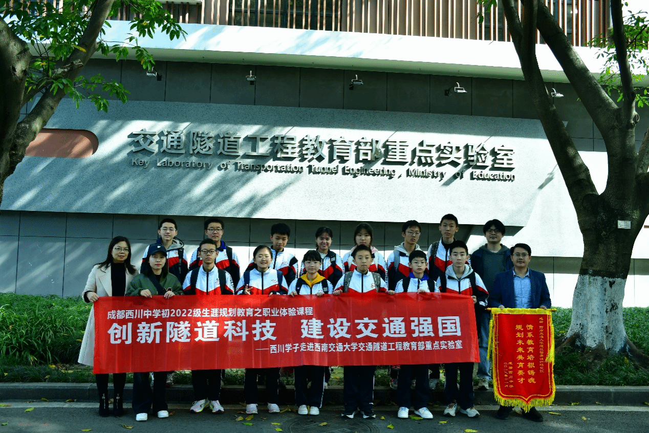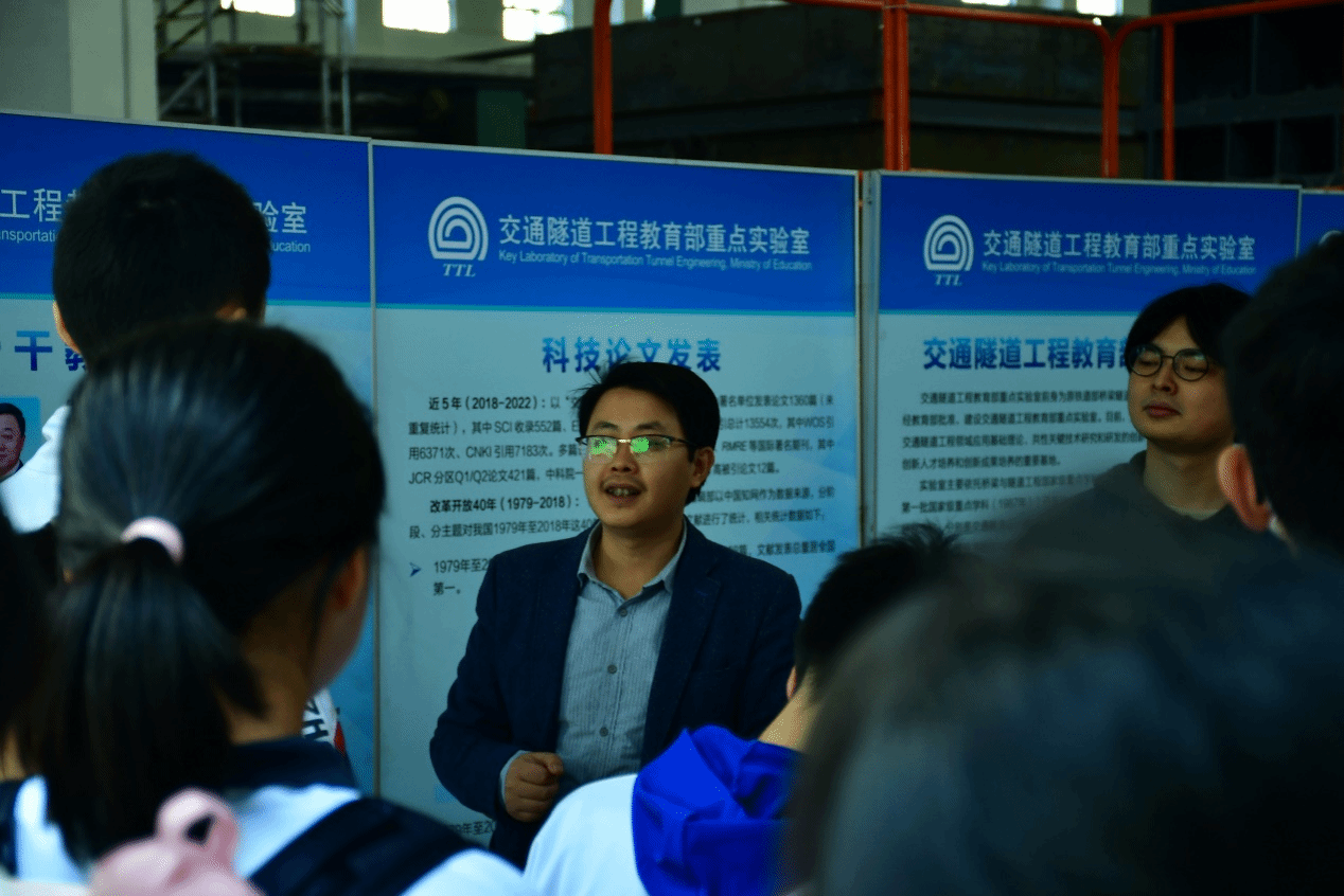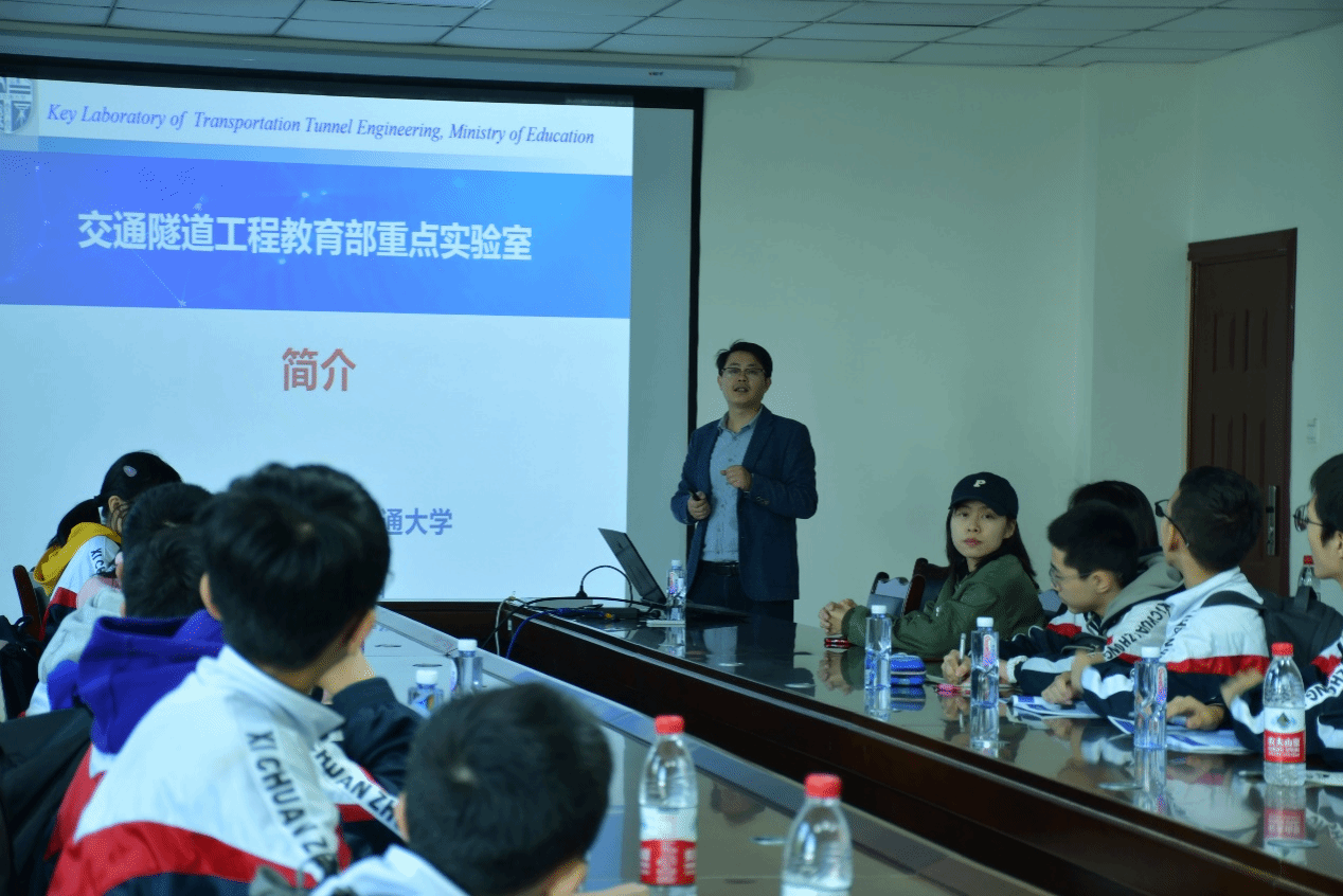交通隧道工程教育部重点实验室,进行为期半天的参观交流。地下工程系姚超凡老师,硕士研究生张逸飞、刘语泉代表交通隧道工程教育部实验室出席了本次活动。本次参观活动主要分为实验室设备参观和科普讲座两部分。此次活动让西川中学的同学们近距离了解隧道工程的魅力,也增进了同学对对隧道工程专业的认识。