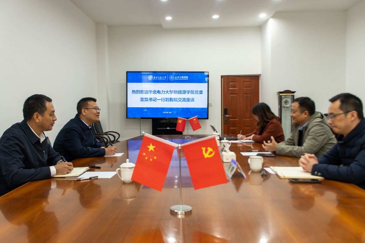 关于党建工作经验的交流,引领双方学院党建事业进一步发展,12月15日下午,华北电力大学新能源学院党委书记宫凯,副处级组织员张栋峰一行来性吧
