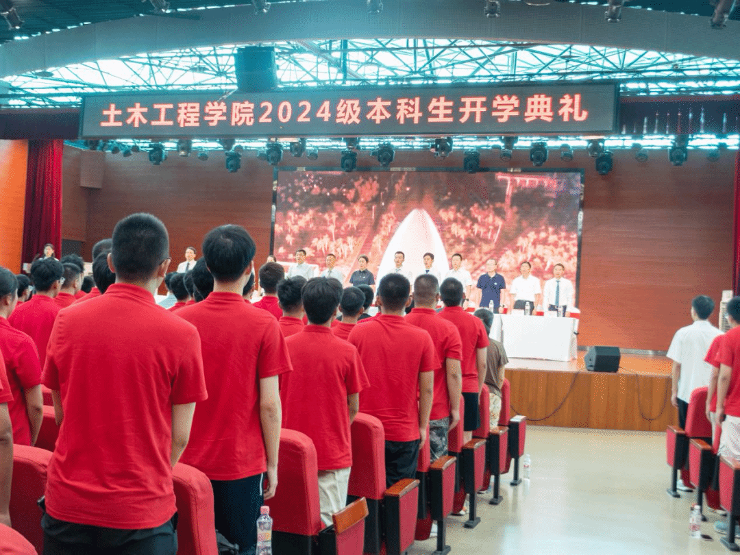 迎来了745名本科新生。9月1日下午,学院隆重举行2024级本科生开学典礼。学院院长蒲黔辉,副院长富海鹰、王明年、陈嵘,党委副书记兼副院长车小洁,道路与铁道工程系主任杨荣山,桥梁工程系主任李永乐,地下工程系主任方勇,建筑工程系主任余志祥,岩土工程系副主任冯君,陆地交通地质灾害防治技术国家工程研究中心执行副主任庄卫林,BIM及图学研究所副主任尹紫红出席典礼;2024级本科生班导师、辅导员到场观礼。典礼由党委副书记刘萍主持。