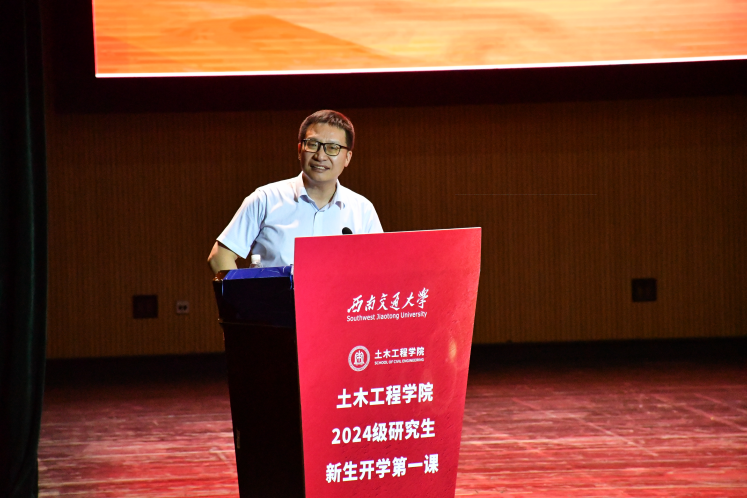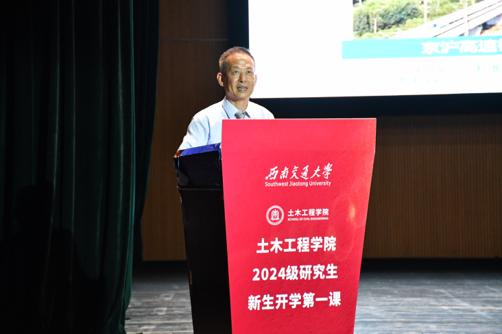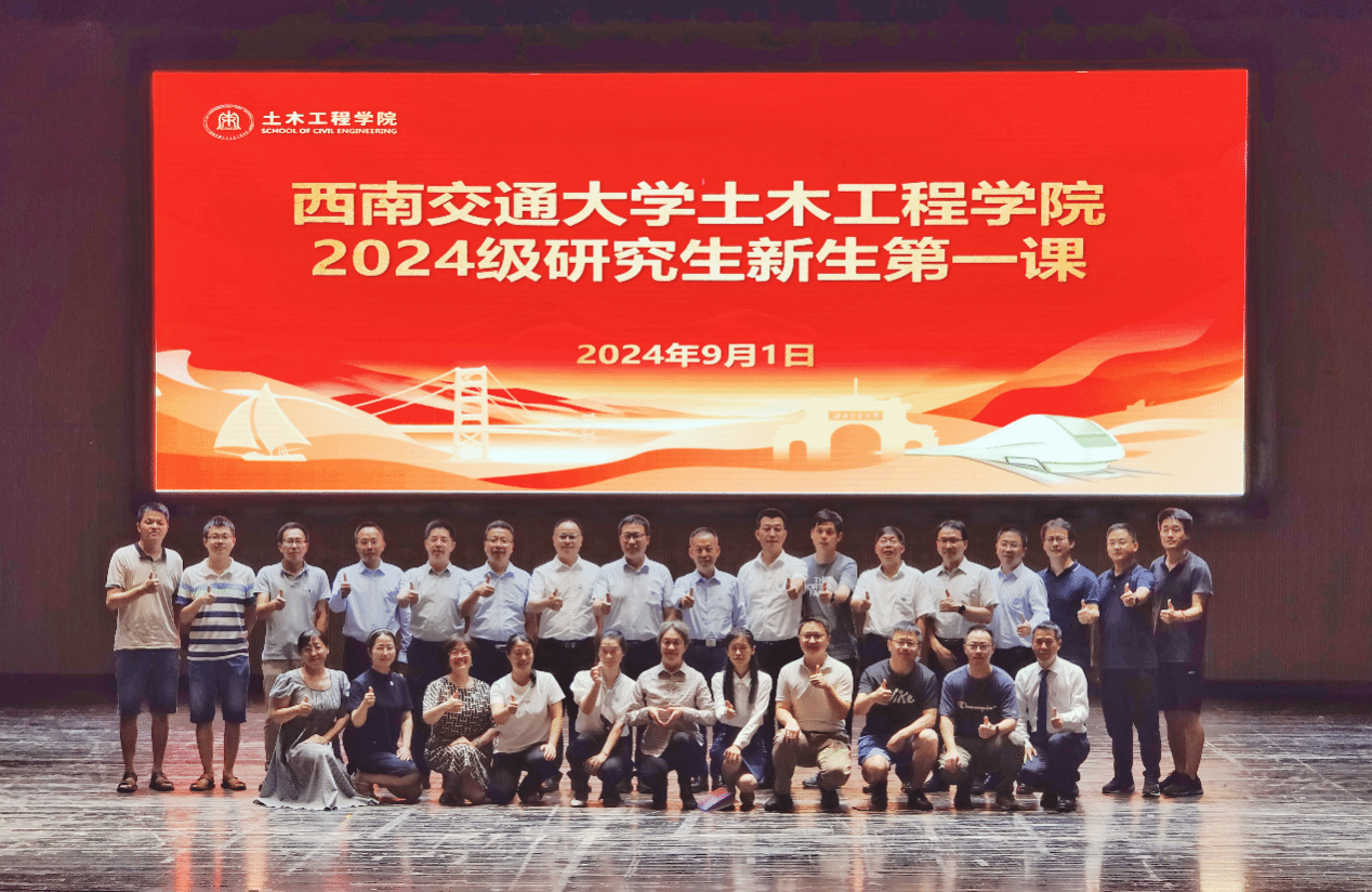 在九里校区大学生会堂隆重举行了2024级研究生新生开学第一课,活动邀请武汉大学/华中科技大学郑俊杰教授担任主讲嘉宾。学院院长蒲黔辉,副院长富海鹰、王明年、陈嵘,党委副书记兼副院长车小洁,党委副书记刘萍,桥梁系教师徐腾飞、岩土系教师张俊云,各系室主任莅临出席;研究生导师代表和辅导员参会学习。