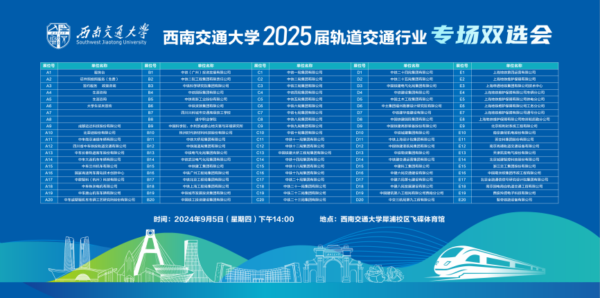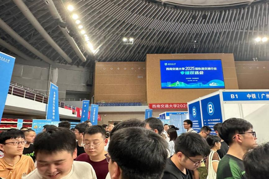 2025届秋季轨道交通行业专场招聘会在犀浦校区的飞碟体育馆隆重举行,吸引了全国近百家轨道交通行业的知名企业和机构参与。