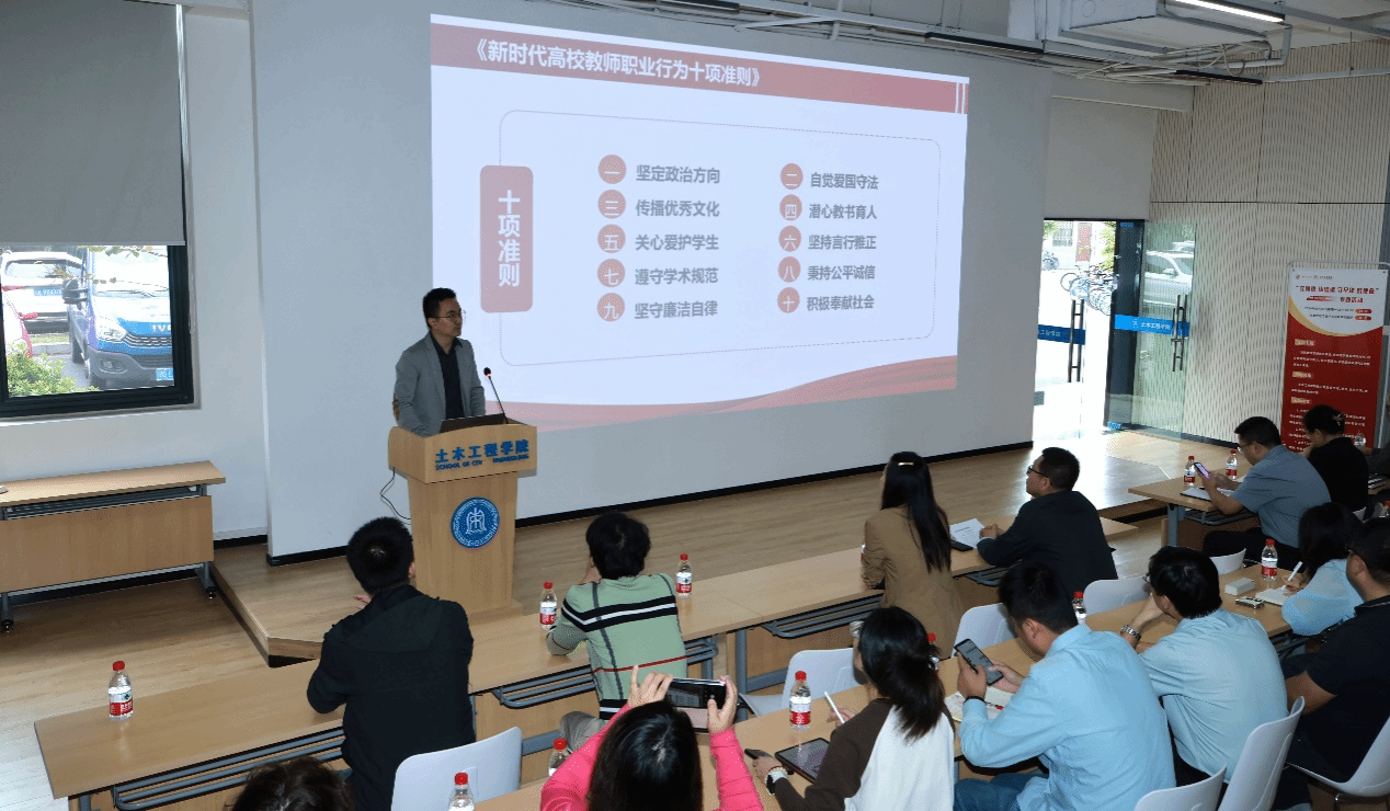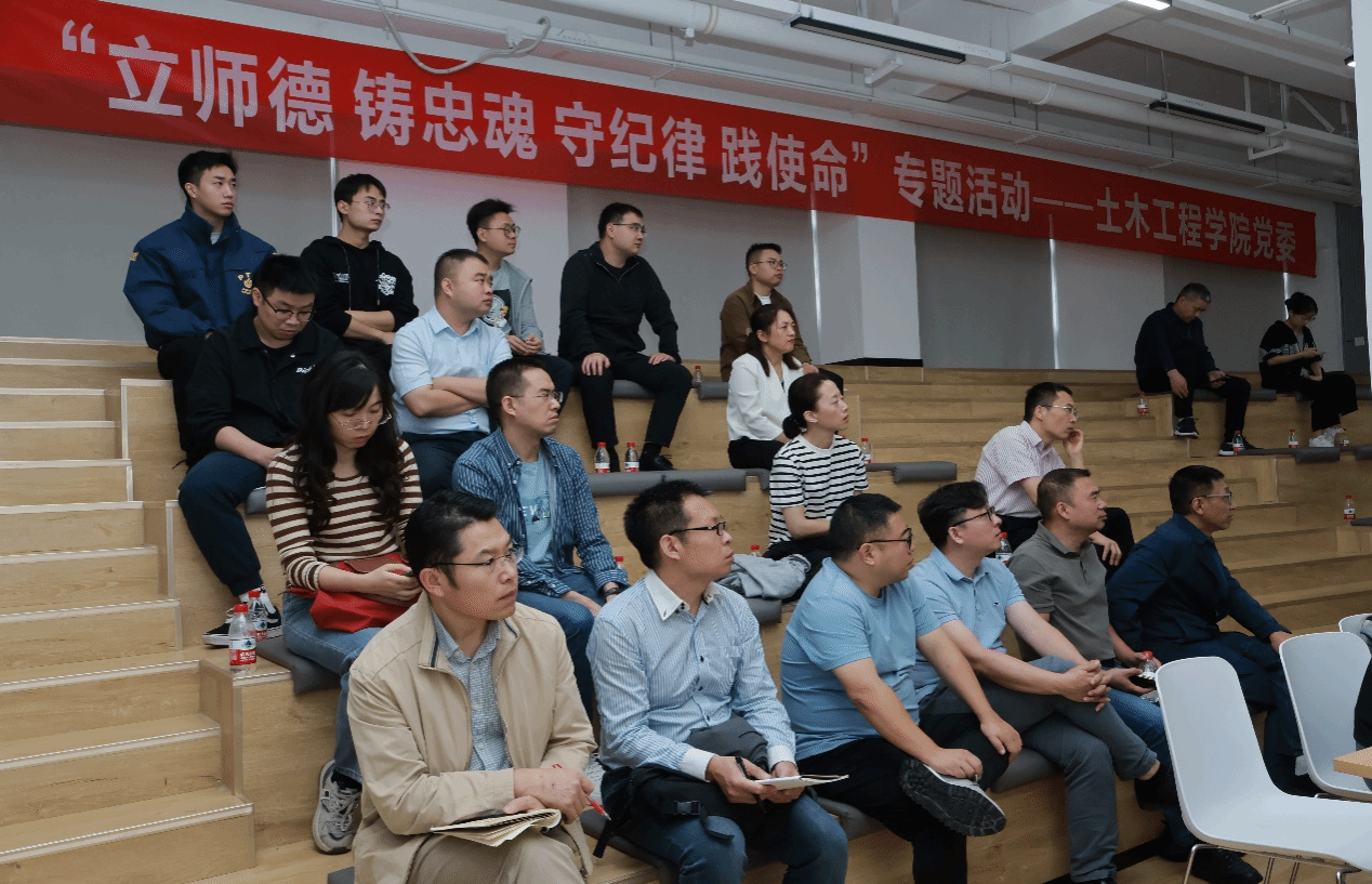 科学技术发展研究院李怀龙副院长、学校党委教师工作部思政与师德师风建设科崔健科长受邀出席,土木学院教工党支部书记、委员、党员代表、教学科研团队教师代表参加。