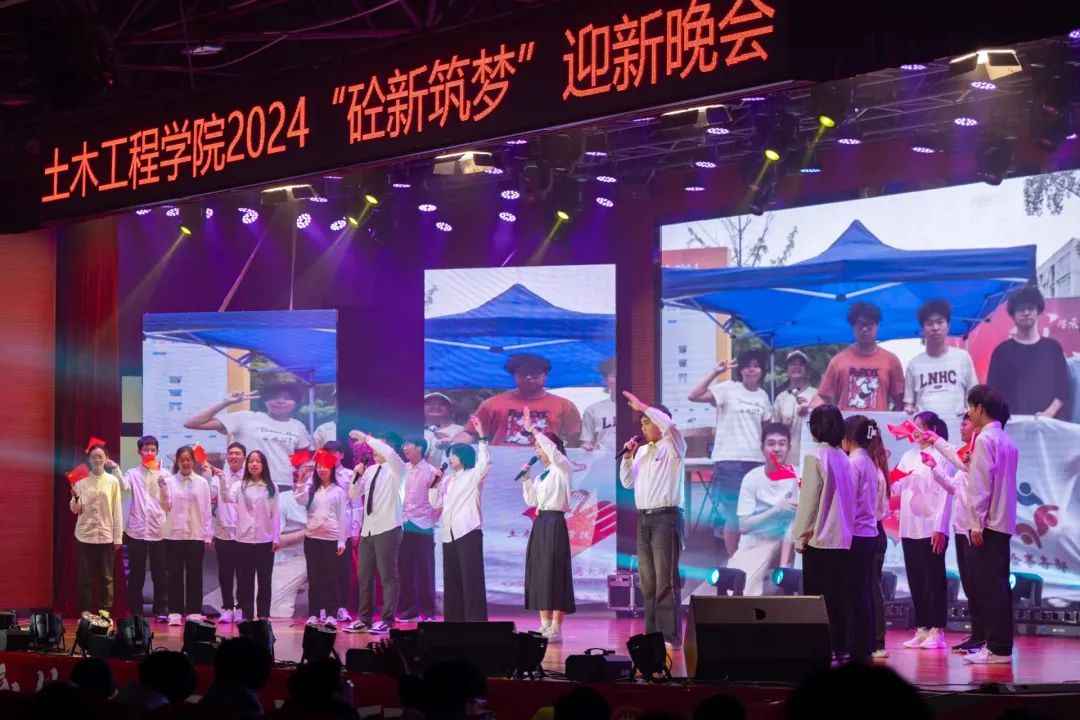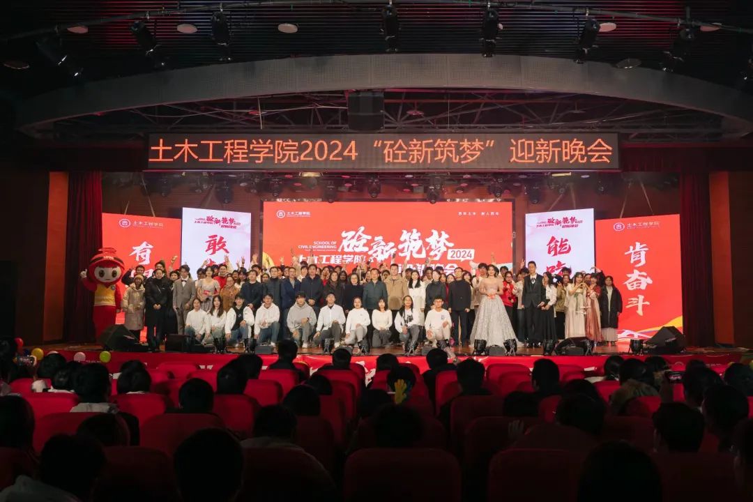 主办、学院学生会承办的2024年“砼新筑梦”迎新晚会盛大开幕。学院院长蒲黔辉,党委书记郑江,副院长陈嵘,党委副书记兼副院长车小洁,党委副书记刘萍,学院教学主管徐腾飞,综合事务办公室主任黄雪娇,团委副书记张进以及胡雄玉、廖文杰、杨玉容、陈子全等本科生2024级班导师莅临晚会现场。
