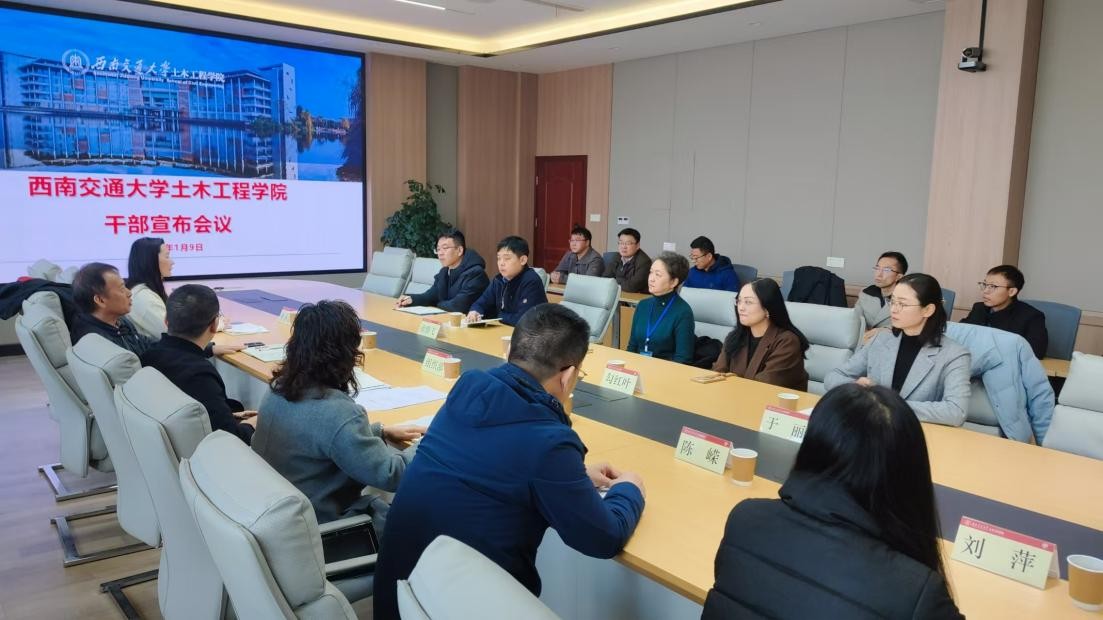 最后郑江书记做总结。她感谢了离任的三位同志的贡献,欢迎他们随时回土木这个大家庭,也表达了对新提任的两位同志的期待。她强调,随着宣布会的召开,意味着今天土木学院的领导班子已经调整完成、人员配齐,新的领导班子要讲政治、讲学习、讲团结,在蒲黔辉院长的带领下将开启新的征程,不断创造学院新的成绩,把学院的各项工作推上新的高度!