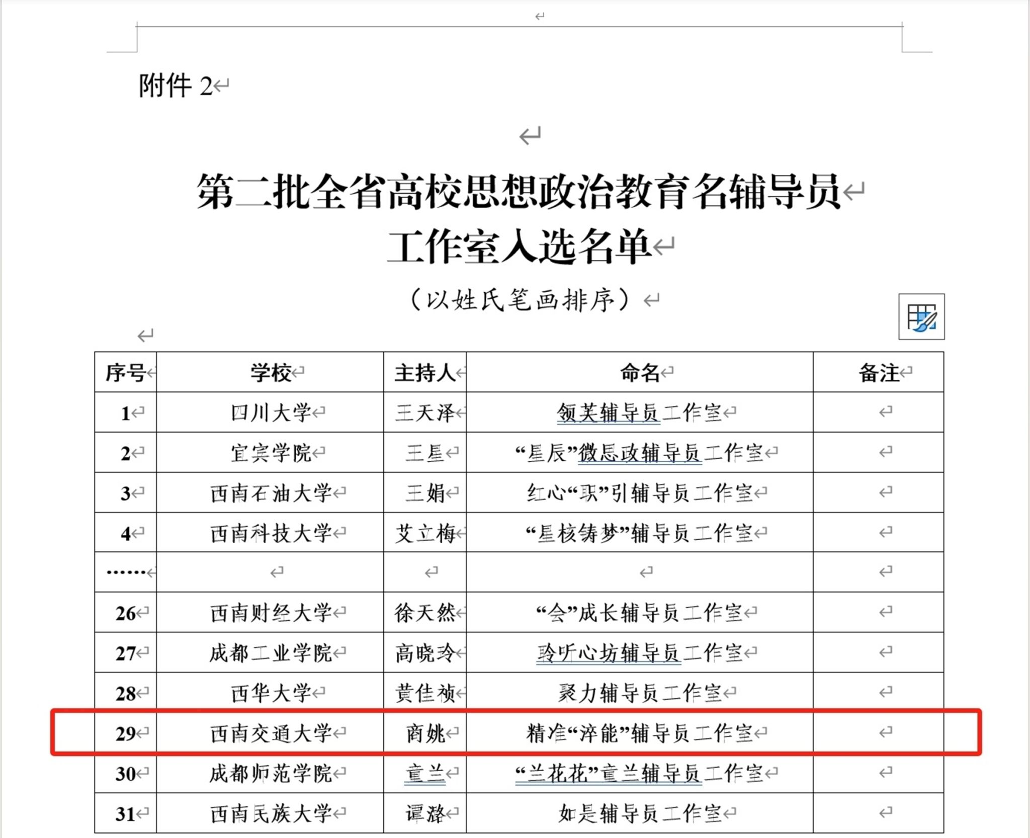 近日,四川省教育厅公布了第二批“全省高校思想政治教育名师工作室”入选名单,我校性吧