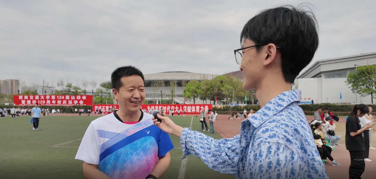 铅球比赛结束后,记者采访到了桥梁工程系主任李永乐教授。谈到参与铅球项目的感受,李永乐教授说:“我们平时进行强度比较大的脑力活动后,适时的运动能对我们的身心起到极大的放松作用,校运会就是一个很好的机会。”