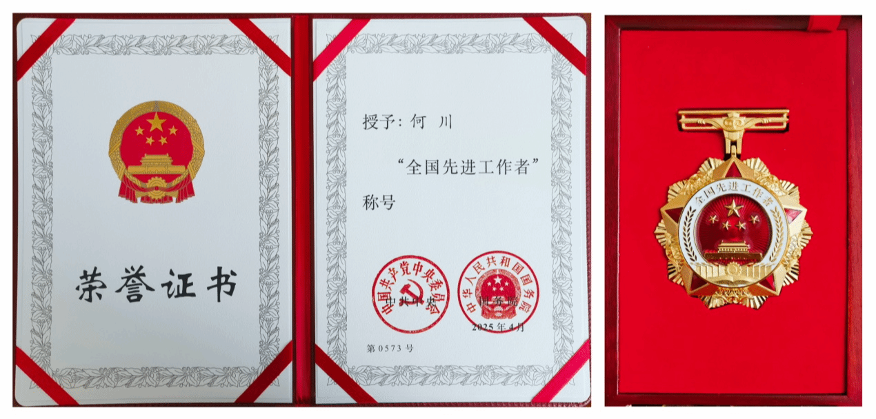 首席教授何川荣获“全国先进工作者”荣誉称号,并在大会上接受表彰。