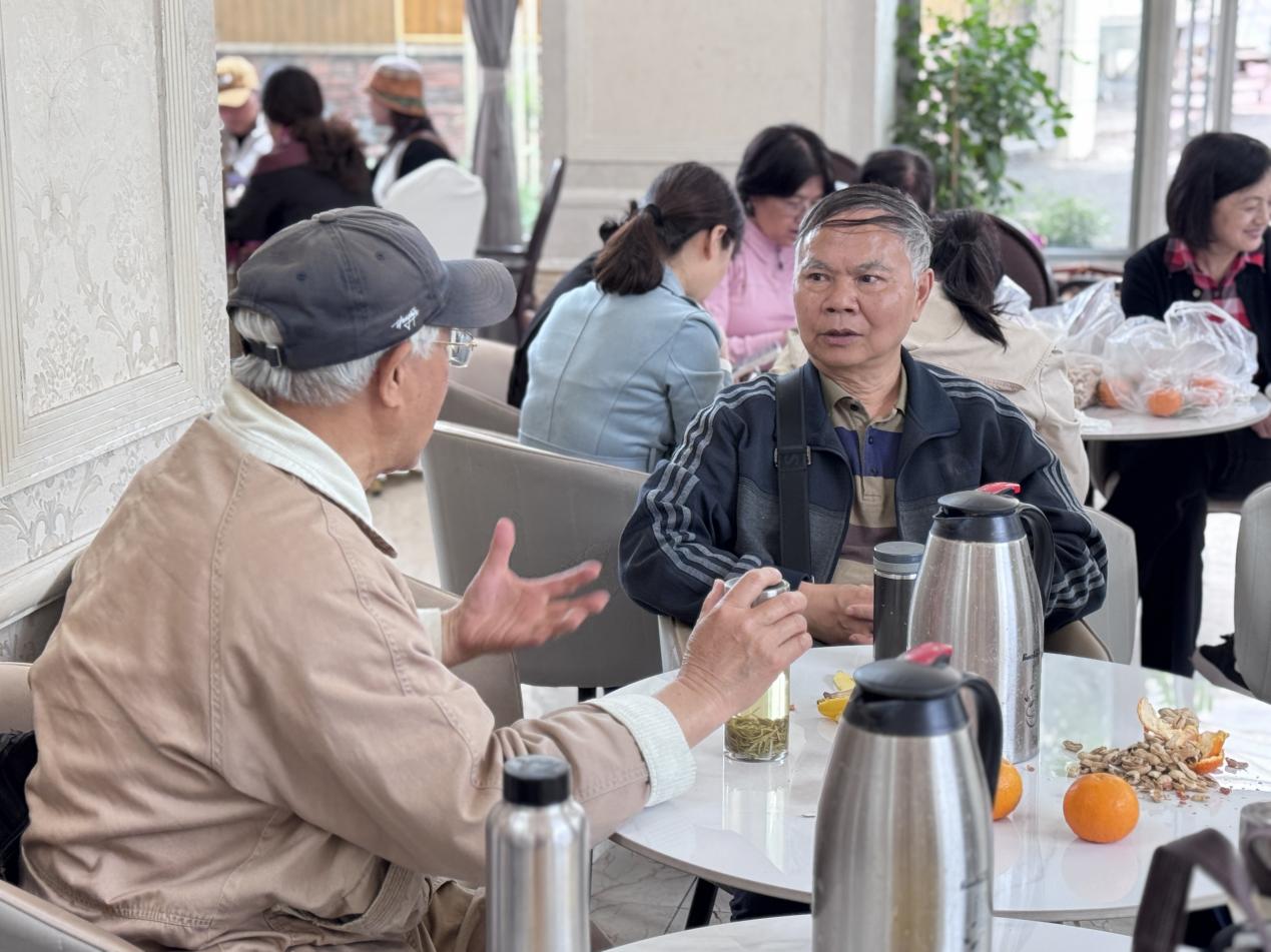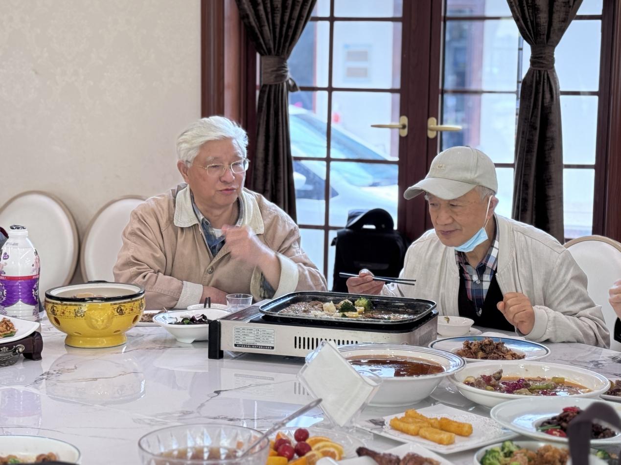 中午,工作人员组织老师们在大厅合影留念,记录这一美好时刻。随后,全体人员共进午餐。餐桌上,大家品尝美味菜肴,分享生活的点滴趣事,尽情享受闲暇时光。餐后,老师们闲坐下来,围在茶桌前与老友品茗聊天,共同回忆在校工作的难忘岁月。