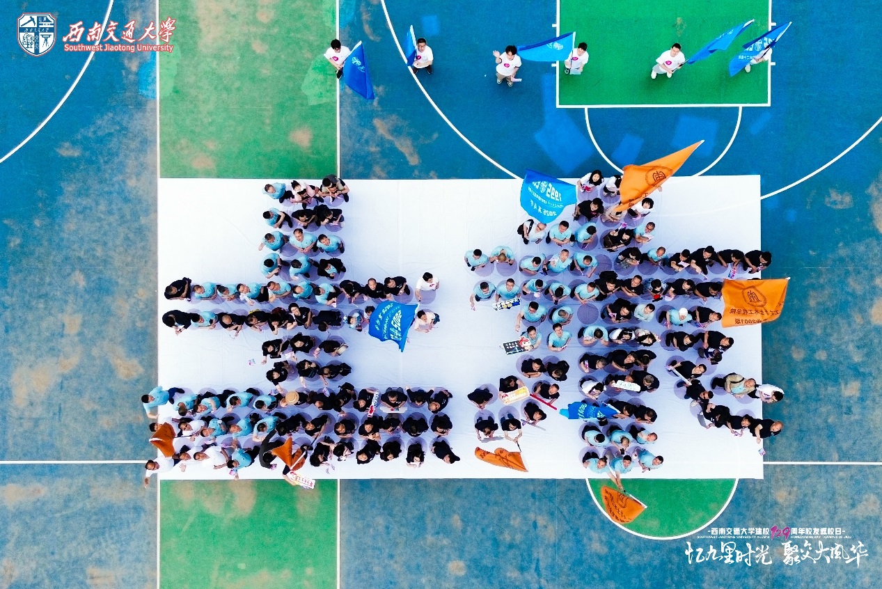 校友们航拍出“土木”字样。学院各年级、班级依次组织合影留念。