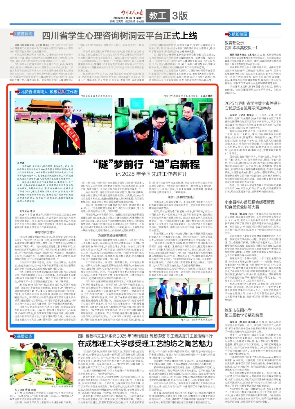 5月26日,四川工人日报以《“隧”梦前行 “道”启新程——记2025年全国先进工作者何川》为题,聚焦报道中国工程院院士、性吧
