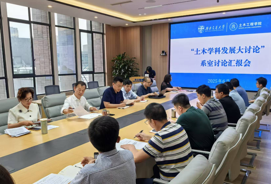 在犀浦校区四号楼4417A会议室召开“土木学科发展大讨论”之系室讨论汇报会。蒲黔辉院长、郑江书记等学院领导班子成员、各系(中心、部门)负责人、教职工党支部书记参加会议。会议由陈嵘副院长主持。