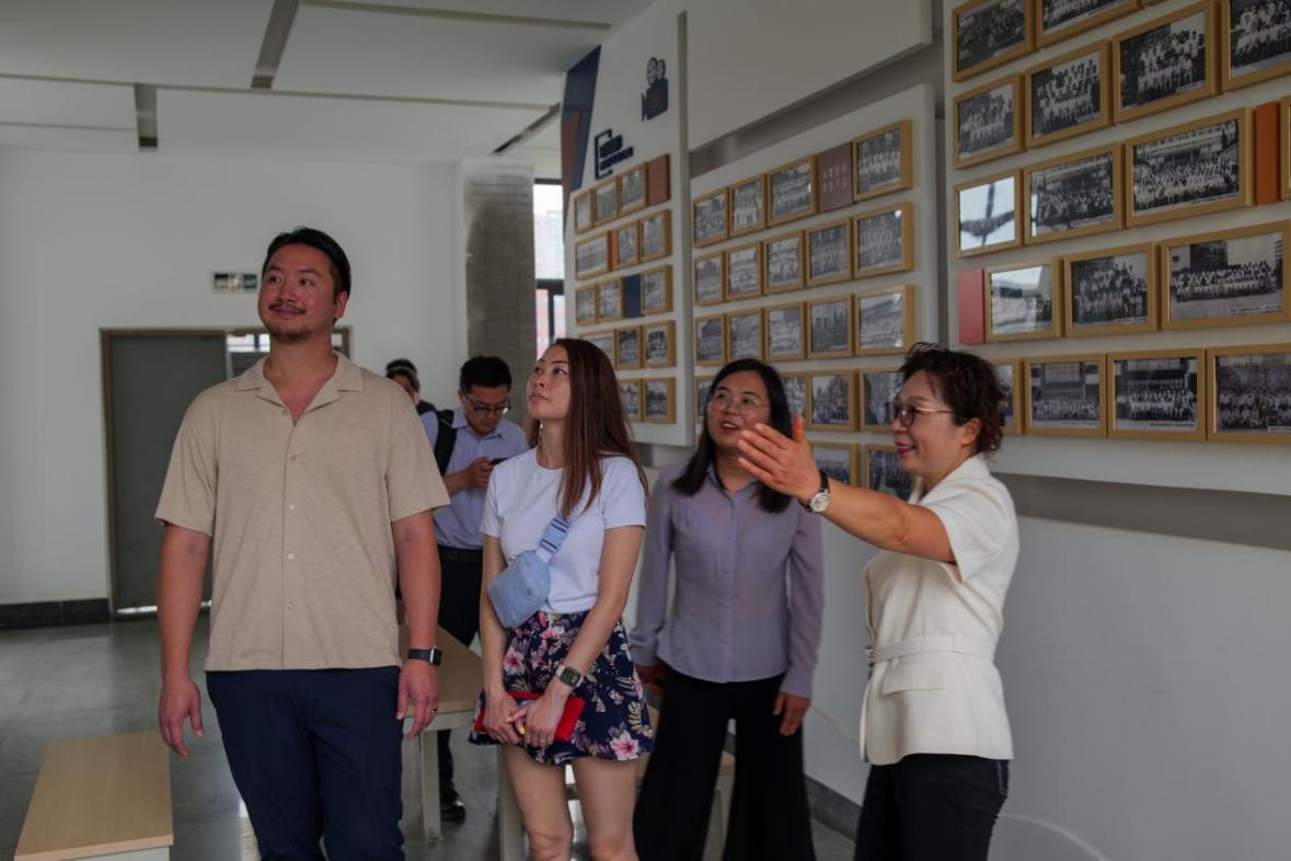 在图书馆,夫妇受到热情接待。在图书馆馆长和大使的引导下,他们重点参观了馆内珍藏的林同炎先生求学时期的宝贵史料。在古籍特藏区,他们见到了林同炎先生当年在唐山交大求学时的毕业设计手稿原件,泛黄的纸张、工整的字迹,无声诉说着青年林同炎严谨治学的态度和在工程领域展现的非凡天赋。这些珍贵档案是我校“严谨治学、严格要求”双严传统的生动写照,也让夫妇二人得以近距离触摸祖父的青春岁月与学术起点。