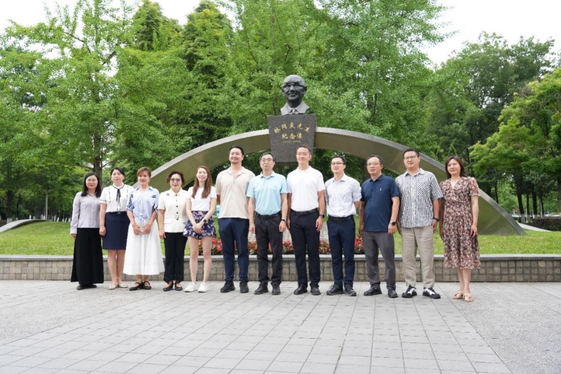 党委书记郑江和校友办、图书馆、校史馆等相关部门领导老师的陪同下,夫妇二人深入走访犀浦校区,先后参观了林同炎先生雕像、校图书馆、校史馆以及性吧