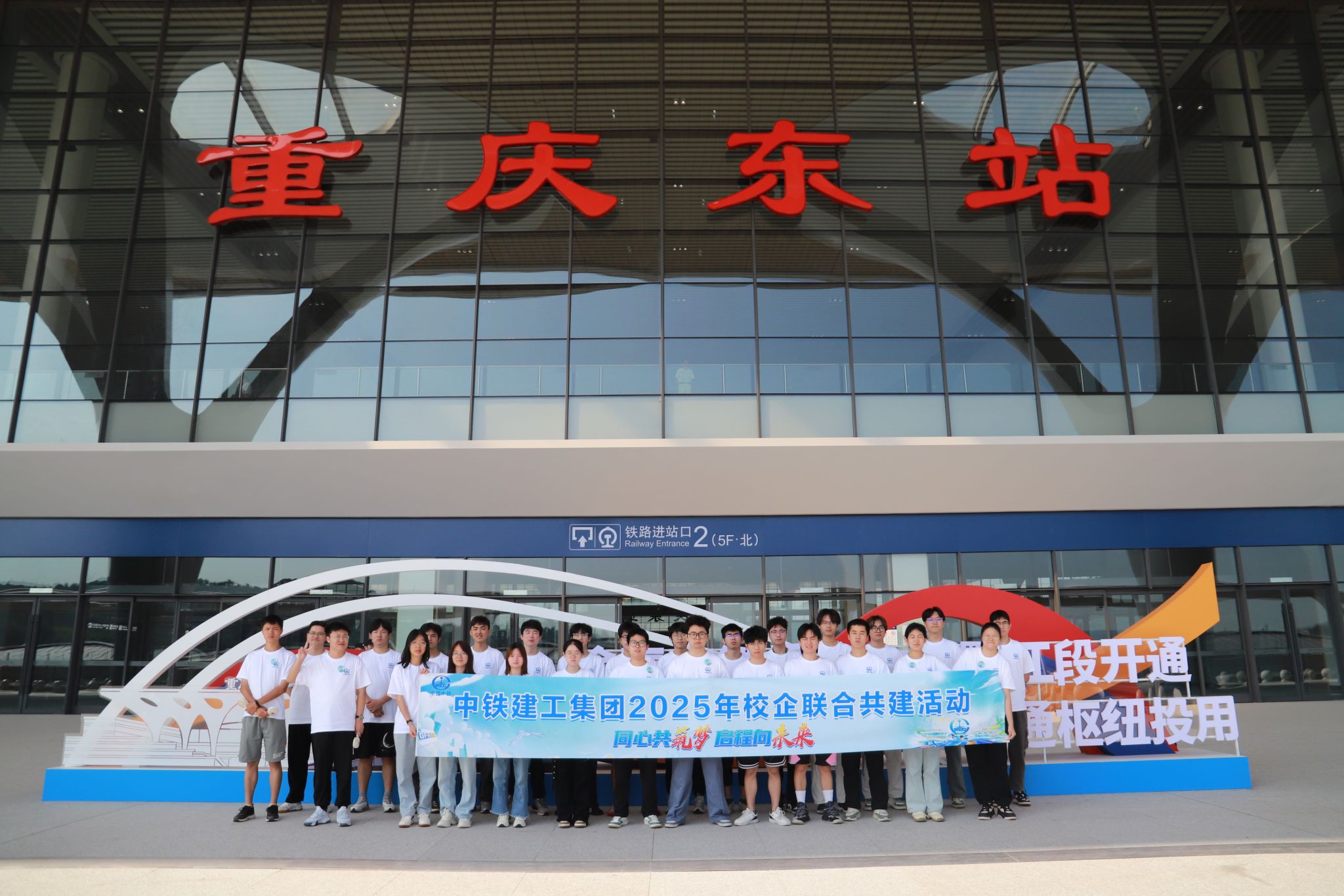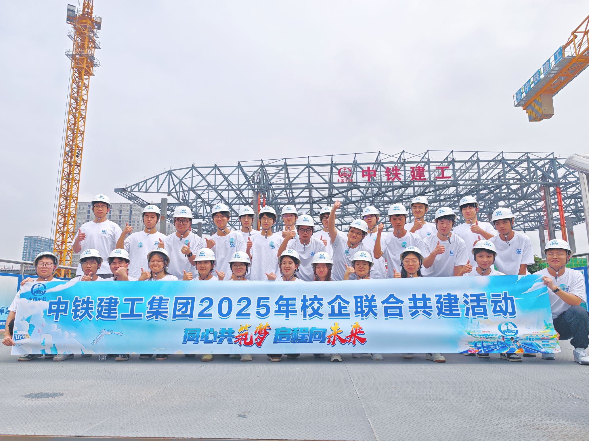 活动期间,我校师生代表深入中铁建工成都站项目施工现场。项目负责人展示了先进的智能建造技术与绿色施工体系。师生们近距离观摩了站房数字孪生平台的实时数据联动,目睹了装配式钢结构的精准吊装过程,对智能交通建设的“硬核”科技有了直观深刻的认识。