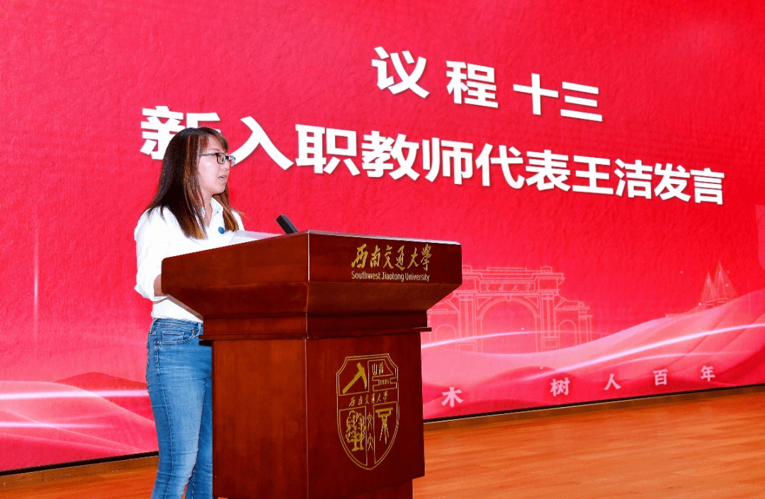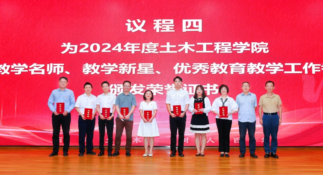 大家庭。在全场师生的见证下,副书记刘萍、工会主席王艺霖、桥梁工程系主任李永乐等为新入职教师佩戴院徽。新入职教师代表王洁在发言中表示,我们会脚踏实地做好教学与科研工作,积极参与学院的建设,为培养更多优秀人才贡献自己的力量。最后,学生工作组杨颖钊、孙雨函、郭哲维等师生表演了小合唱《土木年华——致敬学院老师》,悠扬的歌曲,让学院教育教学表彰会气氛热烈、意犹未尽。