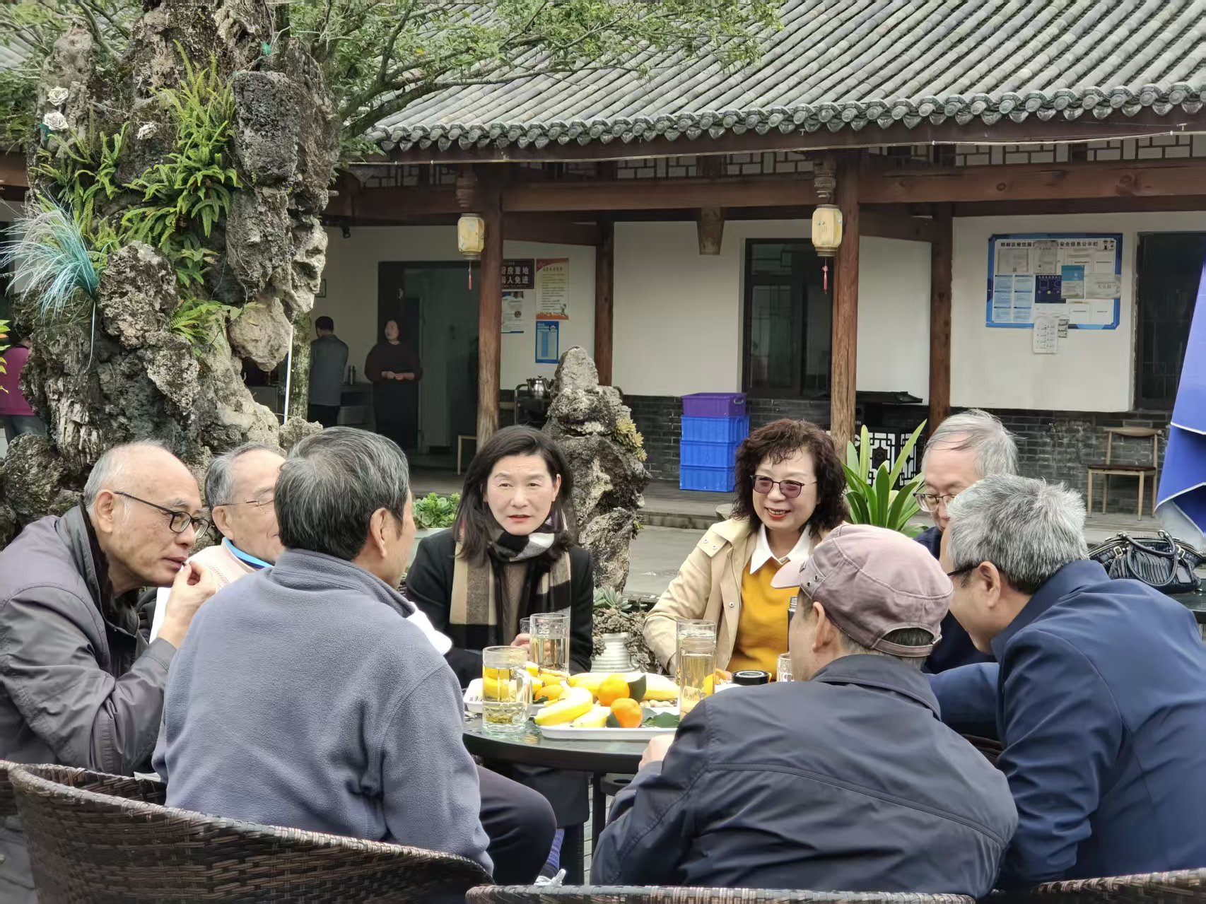 餐后,老师们围坐桌旁,漫享悠然的午后。在暖融融的氛围里,老同事们一边啜饮香茗,一边追忆往昔那些闪亮又难忘的流金岁月。