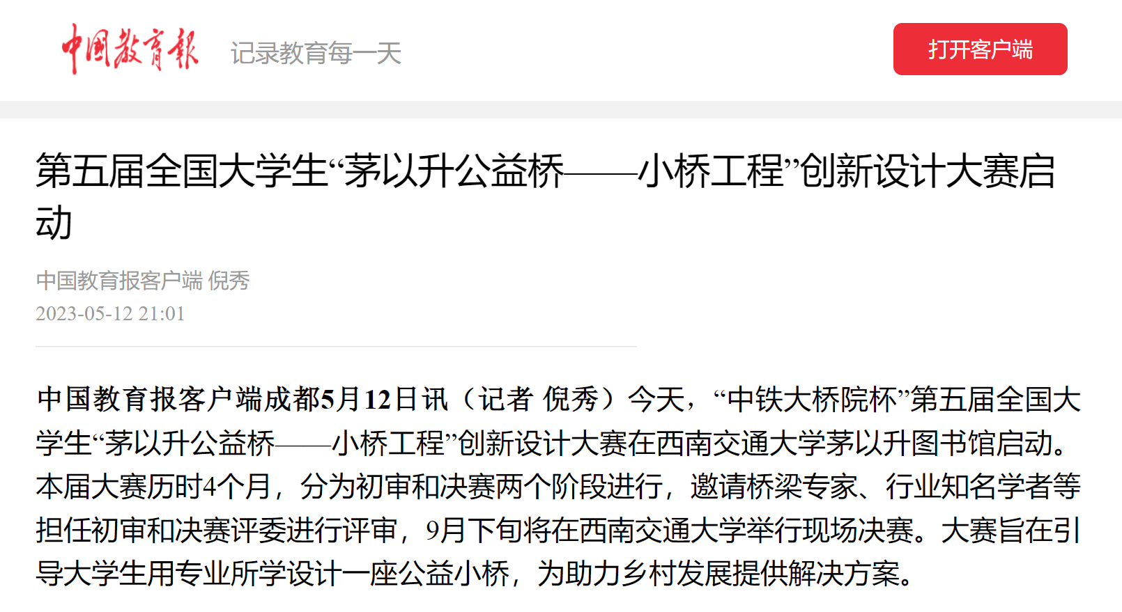 二、【中国教育报客户端】第五届全国大学生“茅以升公益桥——小桥工程”创新设计大赛