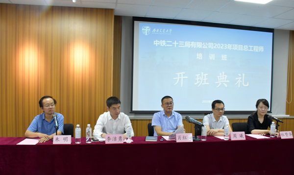 2023年7月10号上午8:30,中铁二十三局有限公司项目总工程师培训班开班典礼在九里校区土木馆1234教室顺利举行。出席此次开班典礼的有中铁二十三局集团有限公司党委书记、董事长肖红武,中铁二十三局集团有限公司副总经理、总工程师李洁勇,性吧