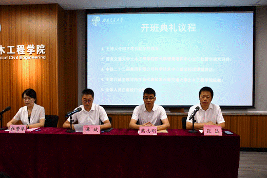 九里校区土木馆1234教室顺利举行。出席本次开班典礼的领导嘉宾有:中铁二十三局集团有限公司科学技术中心副总经理谭斌、科技创新与数字化部副总经理熊志刚,性吧