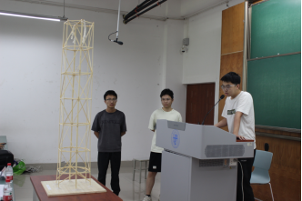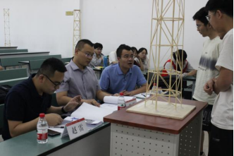 由主持人宣讲竞赛精神与准则后,竞赛正式开始。模型答辩环节与加载环节分开进行,并采取先答辩后加载的方式进行,各小组指派一名同学,结合PPT对模型制作思路、创新理念与分析计算进行讲解;其余成员在主办方负责人指导下,在教室后排旁听他组吸取经验。